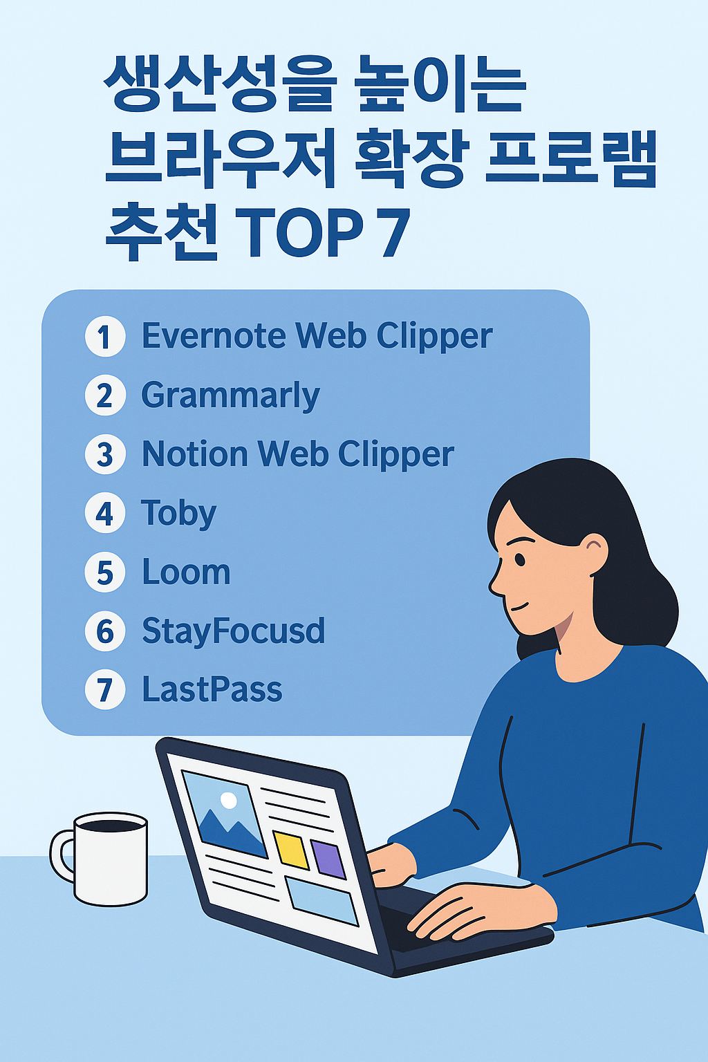 ChatGPT용 브라우저 확장 프로그램 추천 TOP 5 – 업무 자동화에 강력한 조합 ChatGPT는 단순한 대화형 인공지능을 넘어 다양한 작업을 자동화하고 콘텐츠 생산을 도와주는 생산성 AI 도구로 자리 잡고 있습니다. 특히 브라우저 확장 프로그램과 함께 사용하면 그 효율성은 배가되죠. 오늘은 ChatGPT와 연동하여 사용할 수 있는 유용한 브라우저 확장 프로그램 5가지를 소개합니다. 업무 자동화, 콘텐츠 생성, 요약, 번역 등 다양한 작업을 더욱 빠르게 처리해보세요. 1. WebChatGPT – 실시간 정보 검색 통합 ChatGPT는 2023년까지의 데이터까지만 알고 있기 때문에 최신 정보를 반영한 답변이 어렵습니다. 이 문제를 해결해주는 도구가 바로 WebC..