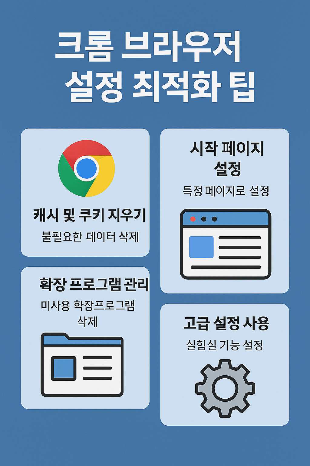전 세계에서 가장 많이 사용되는 웹 브라우저인 Google Chrome(크롬)은 빠르고 유연한 인터페이스를 제공하지만, 정기적인 관리와 설정 최적화 없이 사용하면 점점 느려지고 생산성이 떨어질 수 있습니다. 오늘은 블로거, 프리랜서, 직장인 모두가 활용할 수 있는 크롬 최적화 실전 팁을 정리해봅니다. 속도 향상은 물론이고 업무 집중력과 워크플로우 효율까지 높일 수 있어요.